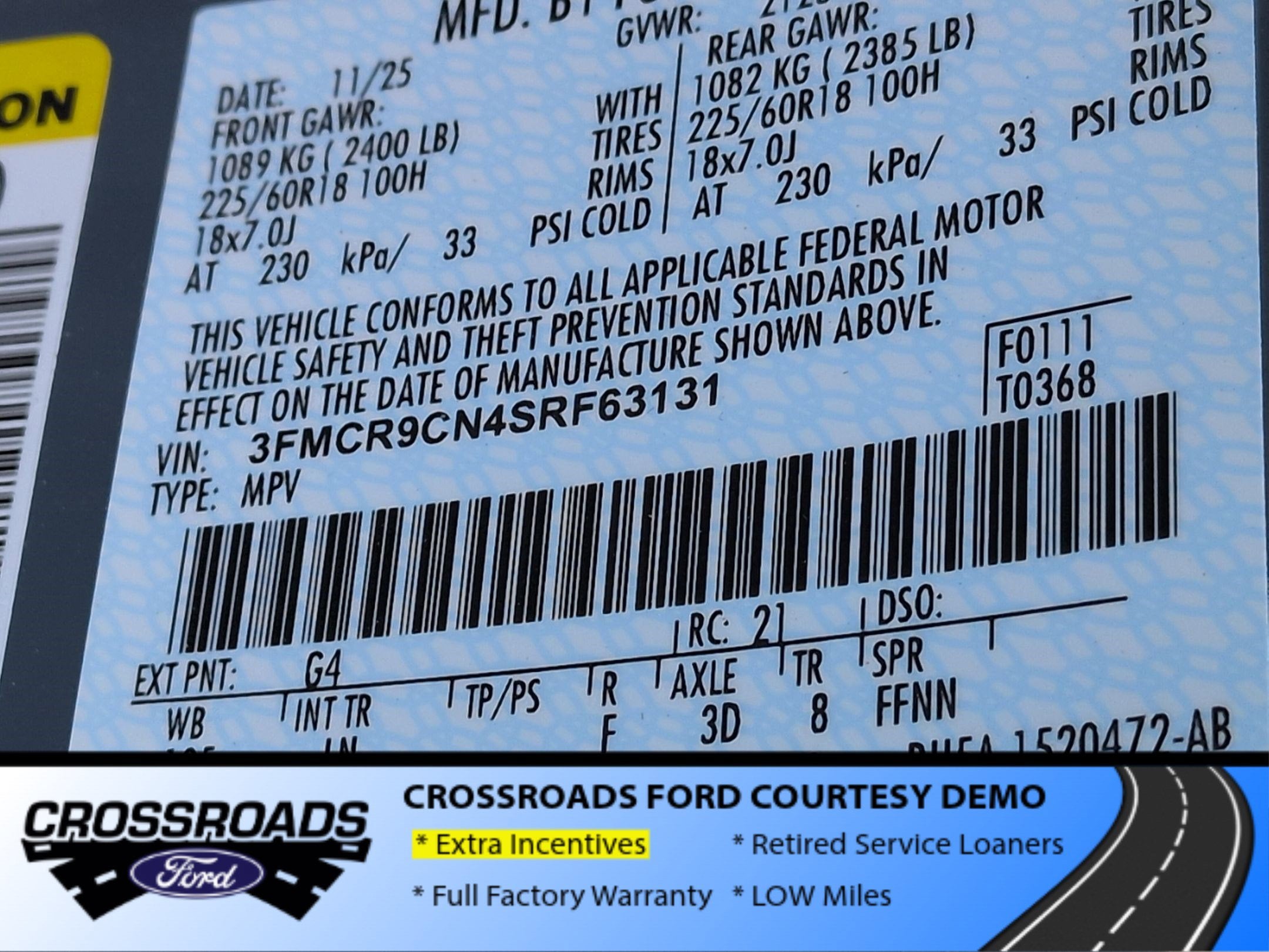 All prices and payments are on in stock units, plus state tax, tag & title fees, $225 Closing Fee, $59 electronic filing fee and all new Ford vehicles include a $987 dealer installed package that includes Ford Surface Care, Ford Tire Care and Window Tint. Out-of-state buyers are responsible for all taxes and fees in the state where the vehicle is registered. Monthly payments and prices may vary based on incentives, program eligibility, applicable trade-in, credit qualifications, residency & fees. Courtesy Demos are non-transferable. For Crossroads Automotive Group priced NEW vehicles and Crossroads Courtesy Demos, you must have a 2018 or newer trade in, for Diesel Super Duty Offers, a 2018 or newer Diesel Trade in, and for both offers you must finance with Ford Motor Credit Company to receive all discounts. The dealership and the website provider are not responsible for misprints on prices or equipment. Dealer approves final selling price. By inquiring about a vehicle or financing, you authorize text, call or email communications from Crossroads.