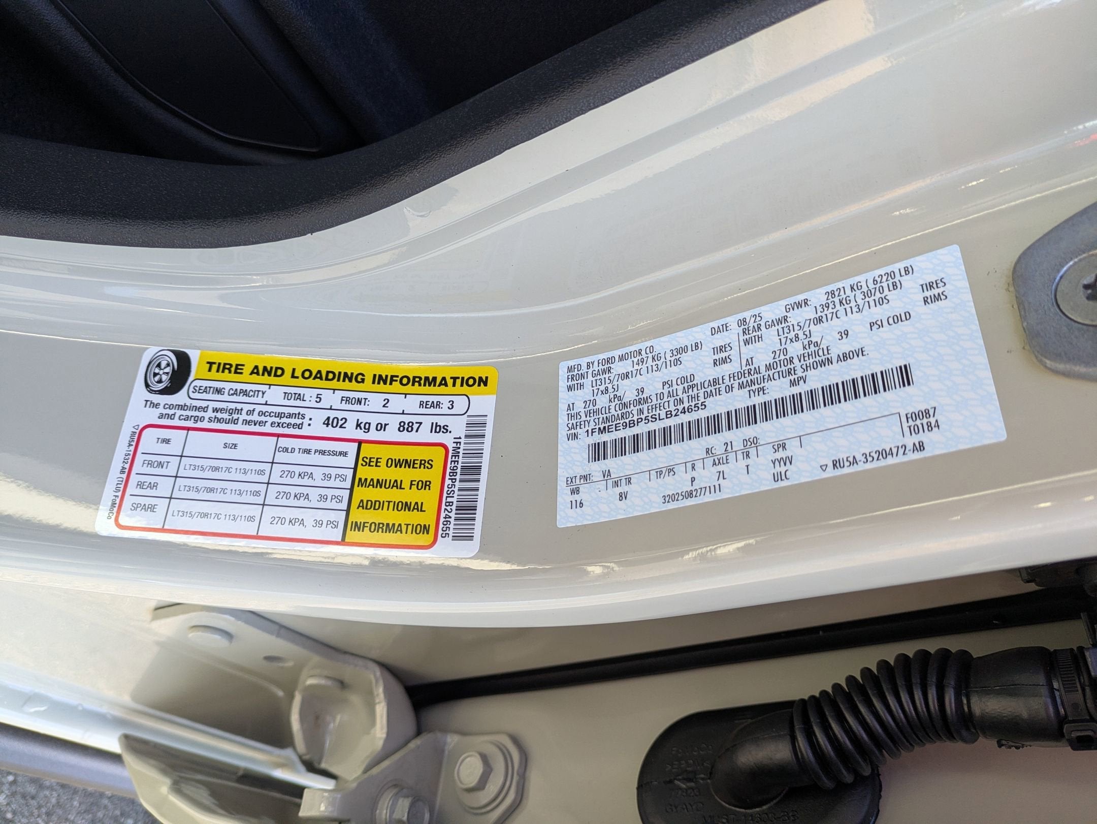 - Tires: LT285/70R17 A/T -inc: full size spare tire w/TPMS