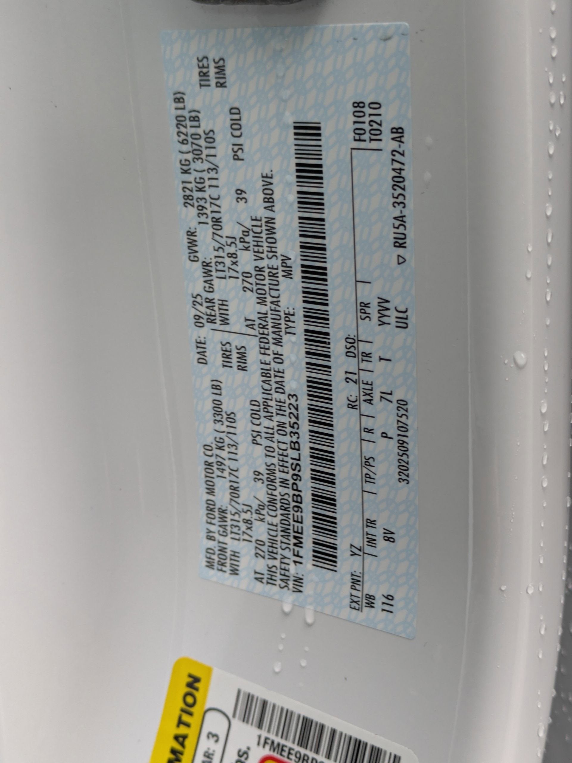- Gross Axle Wt Rating - Front (lbs): 3270