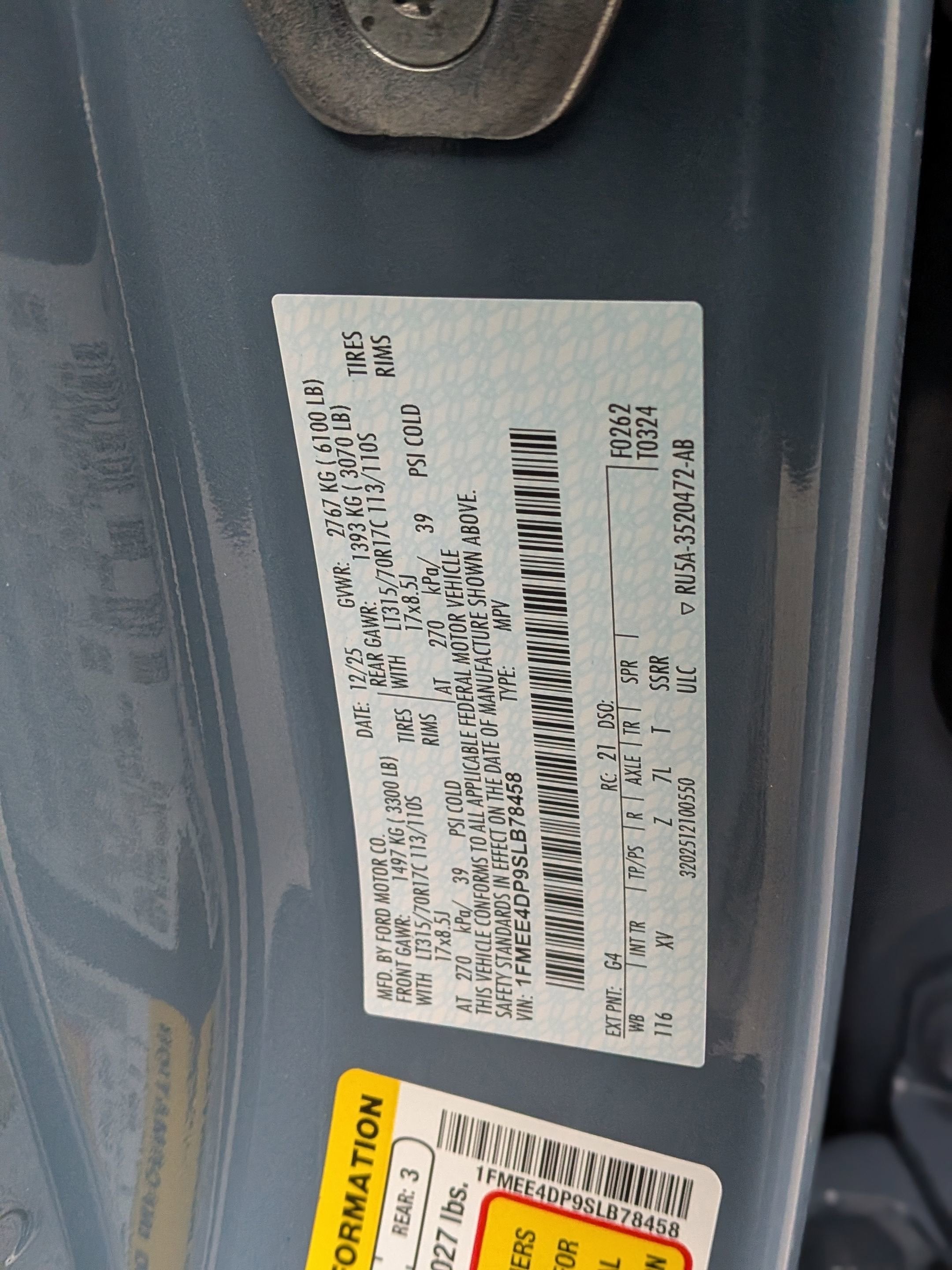 - Gross Axle Wt Rating - Front (lbs): 3270