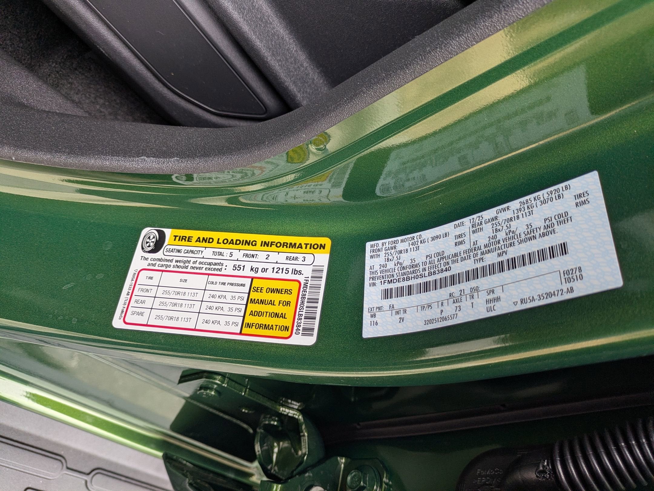 - Tires: P255/70R18 A/T -inc: full size spare tire w/TPMS