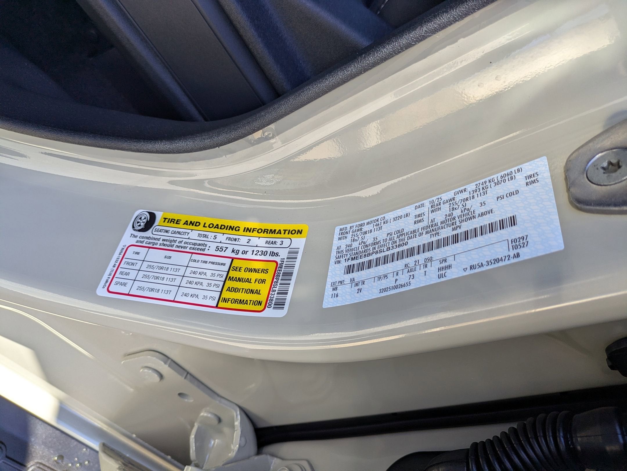 - Tires: P255/70R18 A/T -inc: full size spare tire w/TPMS