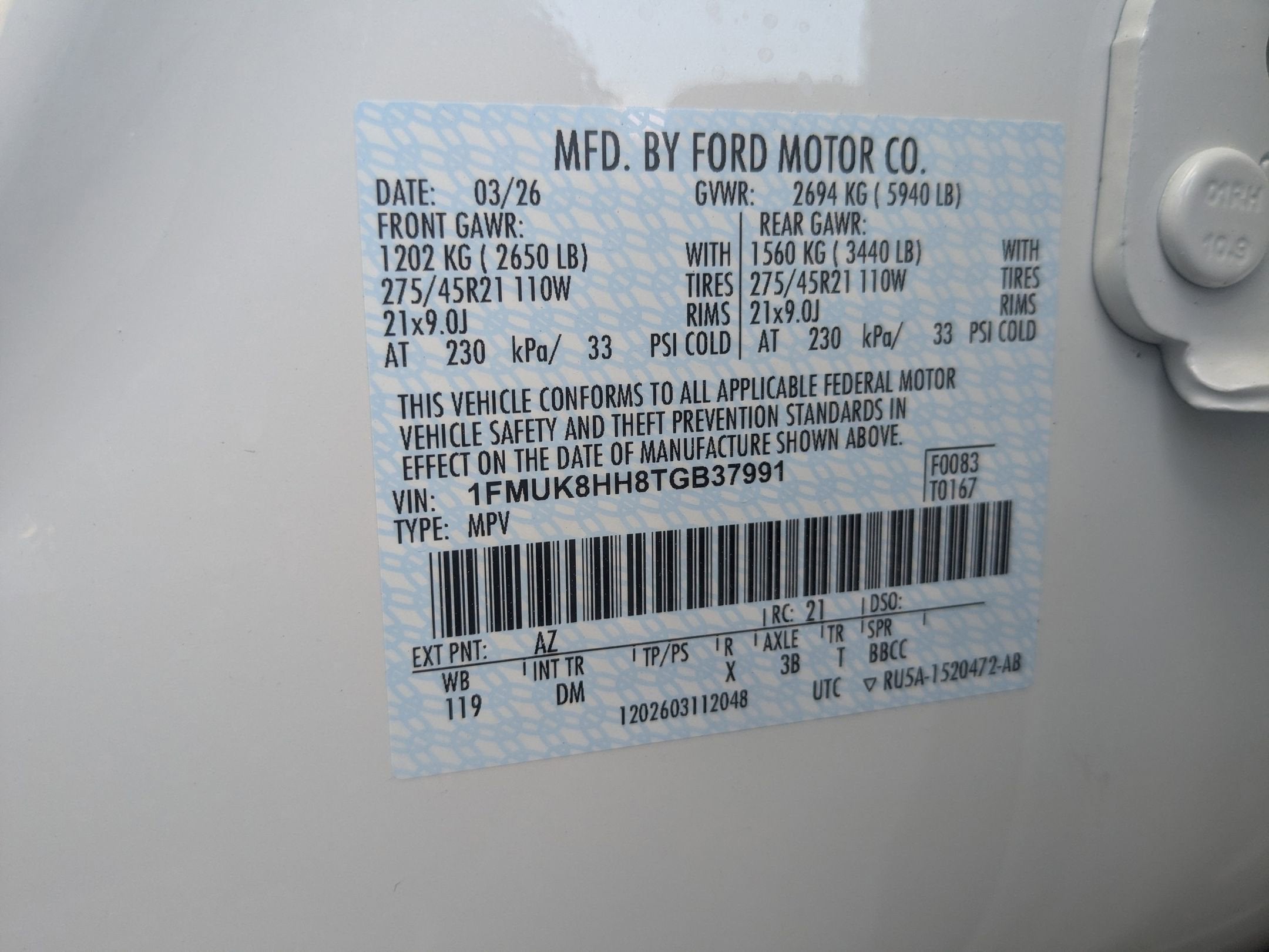 - Tires: P255/55R20 AS BSW