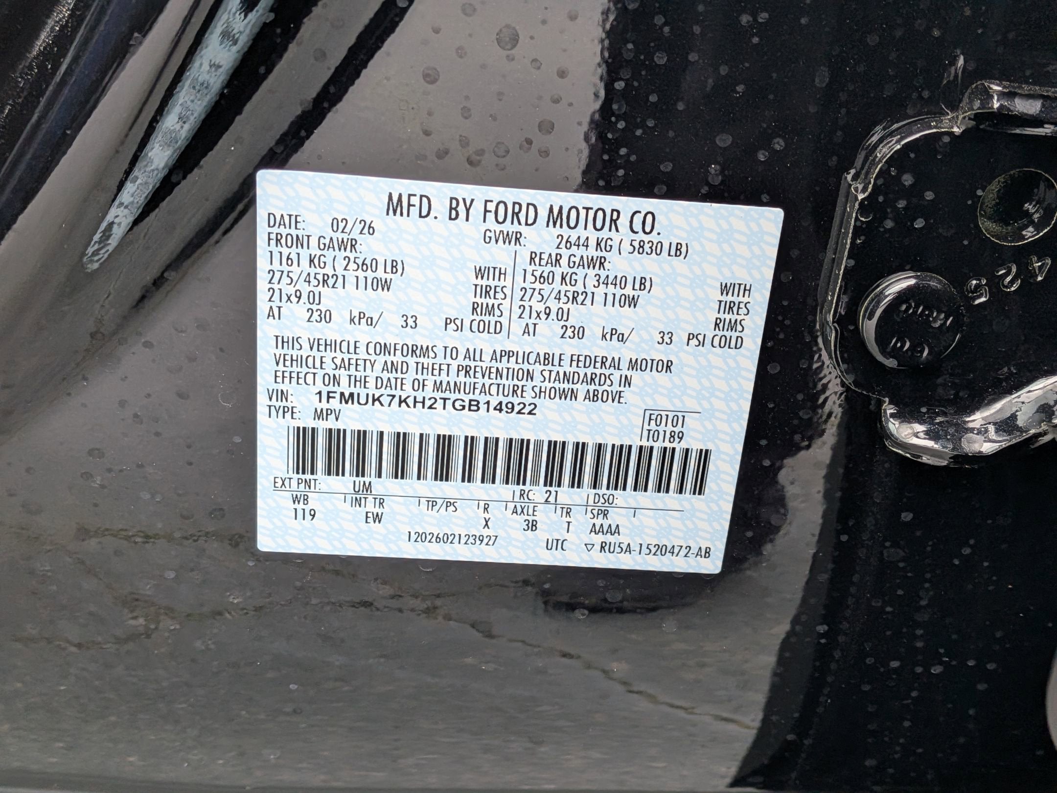 - Front Tire Size: P255/55VR20