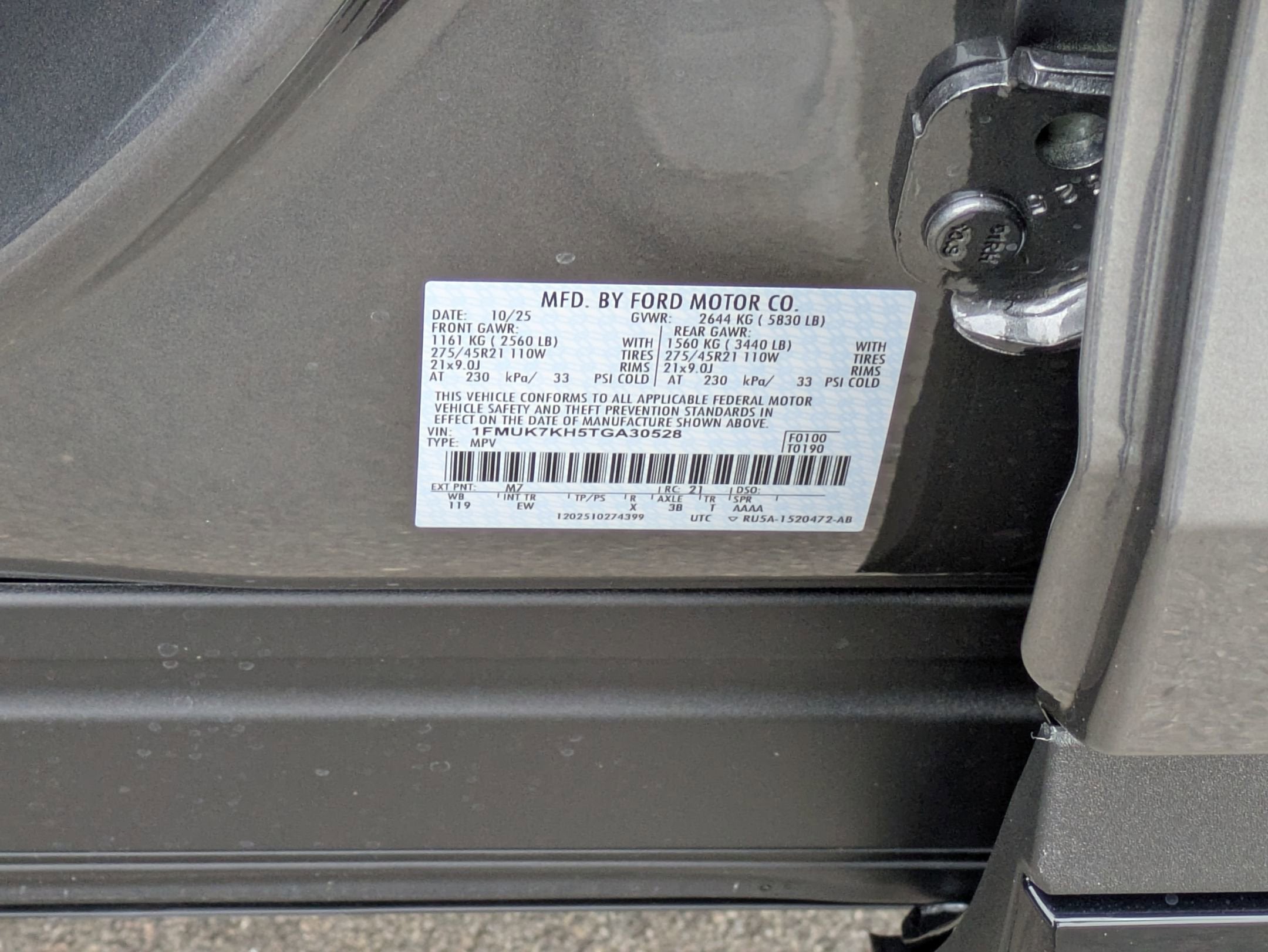 - Front Tire Size: P255/55VR20