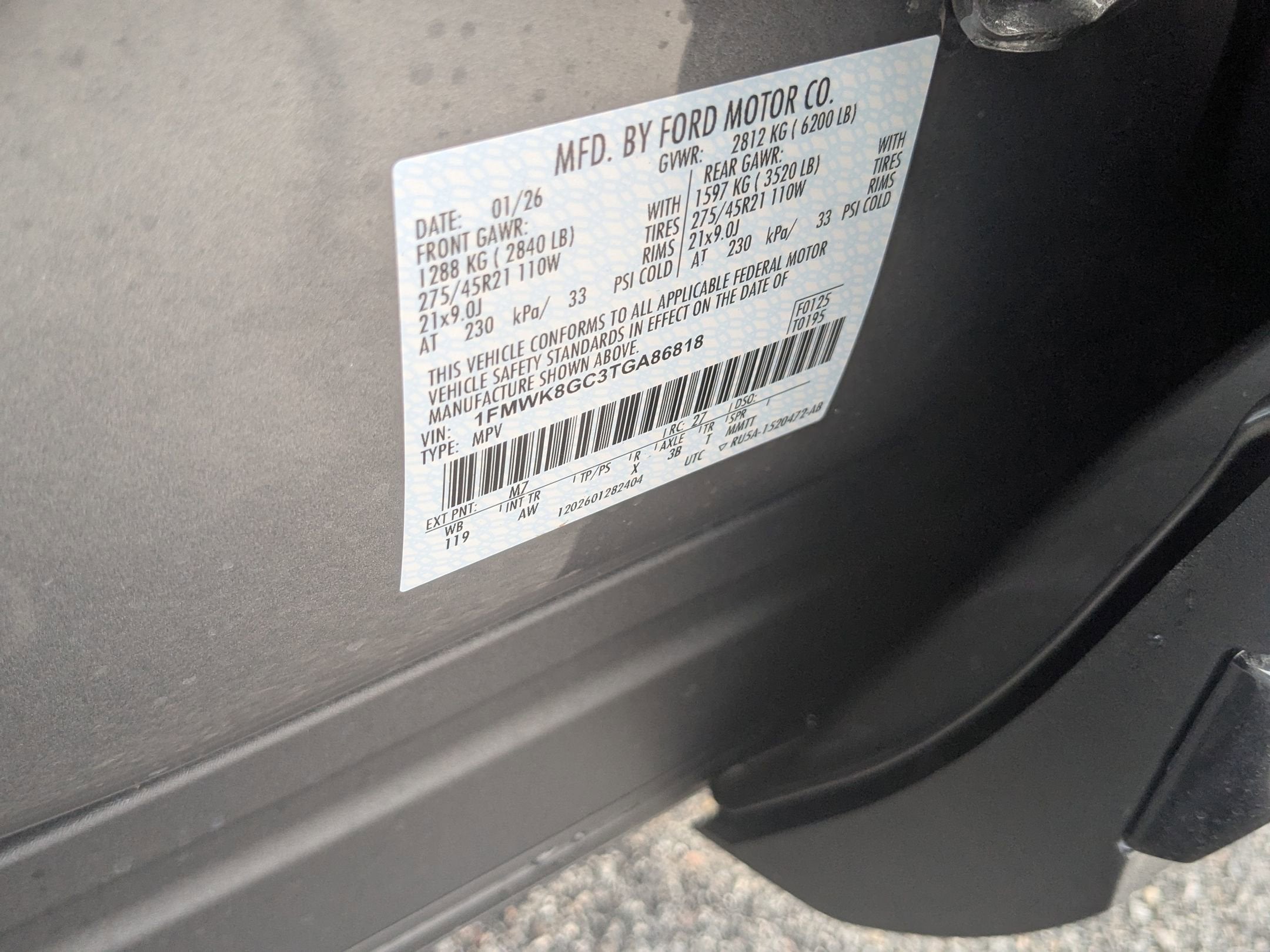 - Front Tire Size: P275/45WR21