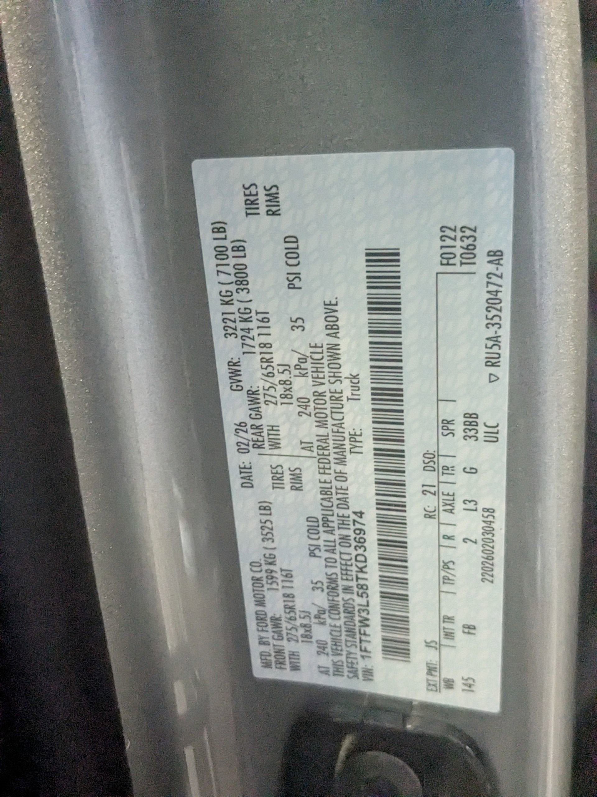 - ENGINE: 5.0L V8 -inc: auto start-stop technology GVWR: 7 100 lbs Payload Package 3.31 Axle Ratio 50-State Emissions Standard equipment on 2.7L (99P) and 5.0L V8 (995) Automatically added to 3.5L Ecoboost (998) and 3.5L PowerBoost full hybrid (99D) orders from dealers located in the following California emissions states: California Massachusetts New York Oregon Pennsylvania Vermont and Washington Available 3.5L Ecoboost (998) and 3.5L PowerBoost full hybrid (99D) option for dealers in federal states for all order types (retail / stock / fleet): Arizona Connecticut Delaware Idaho Maine Maryland Montana New Hampshire New Jersey Nevada Ohio Rhode Island and West Virginia Available option for dealers located in all states for retail orders Available option for dealers located in all states for commercial / rental fleet orders Available option for dealers located in all states for government fleet orders w/ship-to addresses in California emissions states