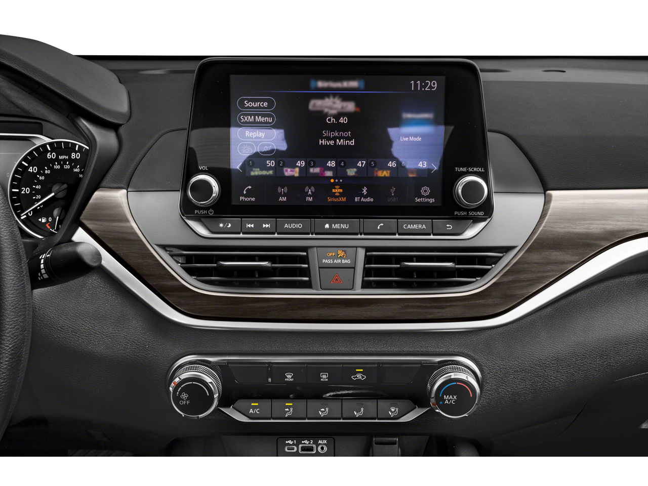 - Radio: AM/FM Audio System -inc: RDS, MP3 and aux-in, 6 speakers, NissanConnect featuring Apple CarPlay, Android Auto, 8" color touch-screen display, 1 front illuminated USB port (type-C) for compatible devices, SiriusXM radio w/advanced audio features, Bluetooth hands-free phone system, streaming audio via Bluetooth, hands-free text messaging assistant, Siri Eyes Free and Google Assistant voice recognition
