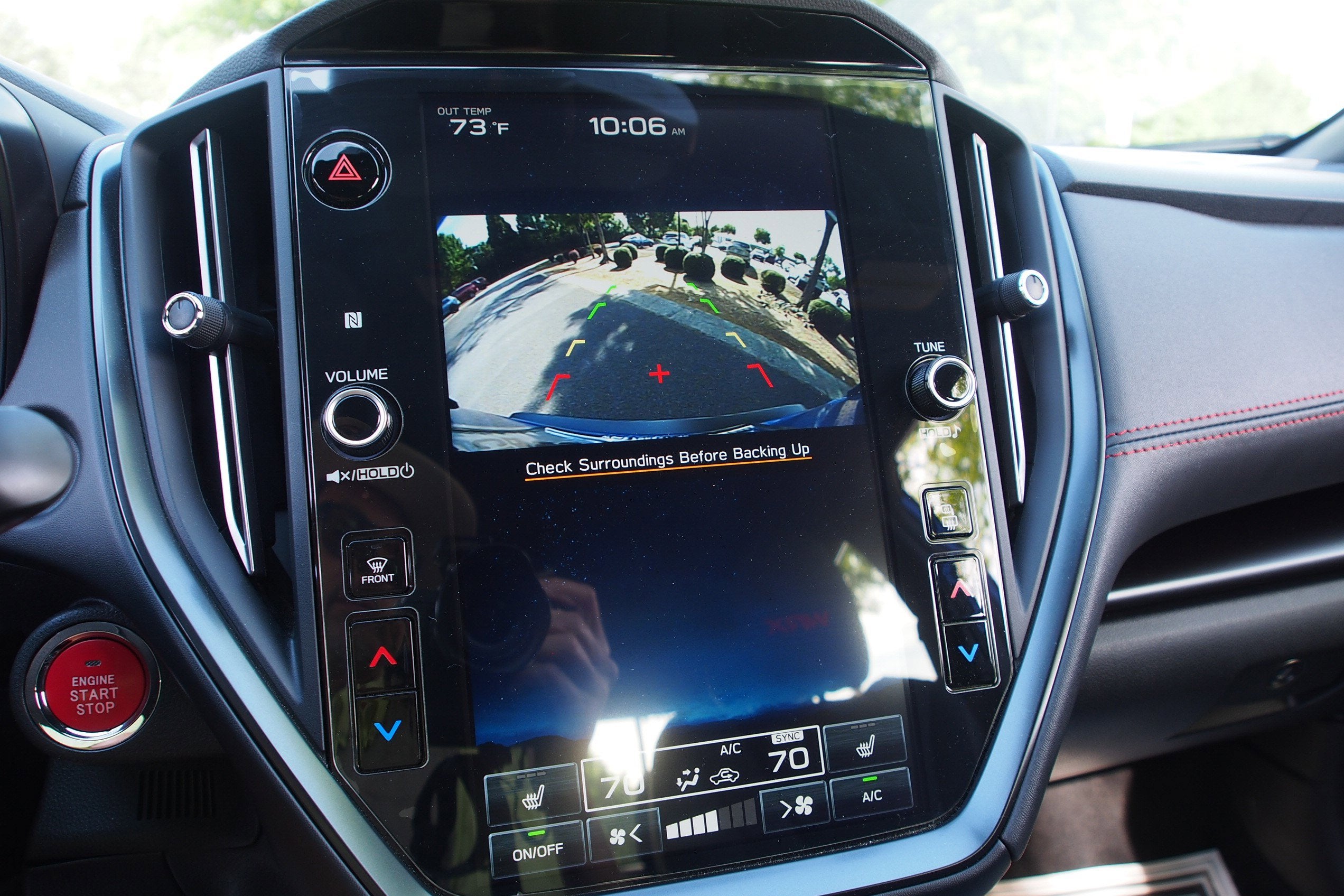 11 Speakers, 4-Wheel Disc Brakes, ABS brakes, Air Conditioning, All-Weather Floor Liners, Alloy wheels, AM/FM radio: SiriusXM, Auto High-beam Headlights, Auto-Dimming Exterior Mirror w/Approach Light, Auto-dimming Rear-View mirror, Automatic temperature control, Brake assist, Bumpers: body-color, Cargo Tray, Driver door bin, Driver vanity mirror, Dual front impact airbags, Dual front side impact airbags, Electronic Stability Control, Emergency communication system: STARLINK Safety and Security (Subscription Required), Exterior Parking Camera Rear, Four wheel independent suspension, Front anti-roll bar, Front Bucket Seats, Front Center Armrest, Front dual zone A/C, Front fog lights, Front reading lights, Fully automatic headlights, harman/kardon® Speakers, Heated door mirrors, Heated front seats, Illuminated entry, Knee airbag, Leather Shift Knob, Leather steering wheel, LED Upgrade, Low tire pressure warning, Navigation System, Occupant sensing airbag, Outside temperature display, Overhead airbag, Overhead console, Panic alarm, Passenger door bin, Passenger vanity mirror, Performance Design Heated Front Bucket Seats, Power door mirrors, Power driver seat, Power moonroof, Power steering, Power windows, Radio data system, Radio: Subaru STARLINK 11.6" Multimedia Plus Sys, Rear anti-roll bar, Rear seat center armrest, Rear window defroster, Remote keyless entry, Security system, Speed control, Speed-sensing steering, Split folding rear seat, Spoiler, Sport steering wheel, Standard Model (6MT), STARLINK/Apple CarPlay/Android Auto, Steering wheel mounted audio controls, Tachometer, Telescoping steering wheel, Tilt steering wheel, Traction control, Trip computer, Turn signal indicator mirrors, Ultrasuede & Leather-Trimmed Seats w/Red Stitching, Variably intermittent wipers, Wheels: 18" x 8.5" Dark Gray Finish Alum Alloy.