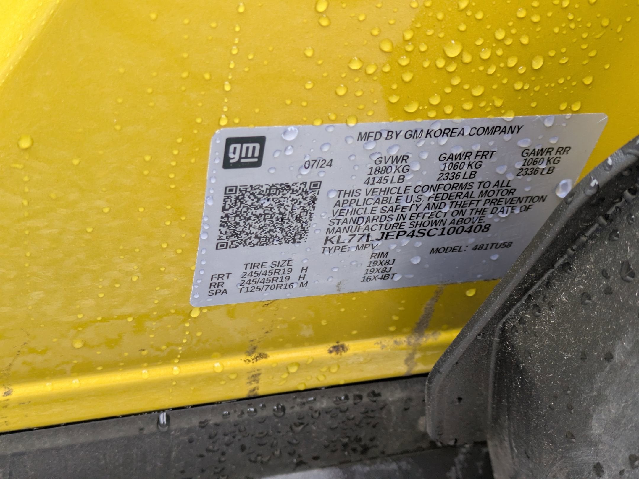 - Tires, 245/45R19 all-season, blackwall